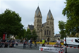 Aber der Rest ist natürlich wieder toll: Schloß, Altstadt, Deutsches Eck, beidseitiges Moselufer, Balduinbrücke, die langen Einkaufsmeilen, das hat schon etwas. Nur kaum Zuschauer, vom Kaiser-Wilhelm-Denkmal abgesehen. Wie immer – aber wem geht das anders? - bin ich froh, als die 40 km-Marke erscheint und der Rest absehbar wird. Wenigstens habe ich mich noch etliche Plätze nach vorne arbeiten können, als die Uhr für mich bei 4:18 Std. angehalten wird. Kaum bin ich im Ziel, macht der Wind dem gegenüberliegenden gelben Lotto-Bogen den Garaus. Ein wenig Fachsimpelei noch, dann trolle ich mich von dannen.