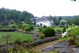 Über den idyllisch gelegenen Waldpfad „Klosterspaziergang“ bin ich bald zurück am zweiten VP, danach geht’s zum zum architektonischen Höhepunkt des Laufs, der Abtei Marienstatt. 1212 gegründet, ist sie ein Zisterzienserkloster und Wallfahrtsort vier Kilometer von Hachenburg entfernt direkt an der Nister. Sie umfaßt die Abtei selbst, eine frühgotische Basilika mit der größten Orgel im Westerwald, eine Bibliothek, ein Brauhaus mit Restaurant, eine Buch- und Kunsthandlung, ein Gästehaus und ein Gymnasium in privater Trägerschaft. Ein optisch wirklich herausragendes Ensemble. Zwischen den Gottesdienstbesuchern sehen wir aus, als wollten wir direkt in die Kirche rennen, biegen aber unmittelbar vor dem Eingang ab. Eine Kulturauszeit, wie noch vor kurzem in Weimar, gibt es leider nicht. Die ersten zehn km sind schnell vorbeigegangen.