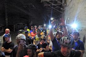 Über eine längere Stahltreppe kommen wir, noch etwas tiefer, zu einer Schleuse, die wir überwinden müssen, bevor das ganz große Abenteuer beginnt. Nein, noch nicht der Lauf, denn wir müssen erst einmal zu dessen Startbereich kommen. Dazu verfrachtet man jeweils 32 Personen auf die Ladefläche eines offenen Klein-Lkw mit zwei seitlichen Sitzreihen und einer Mittelsitzbank, Sardine 2.0 ist angesagt. Ja, dann geht es im wahrsten Sinne des Wortes holterdipolter durch die Gänge. Rund fünf Minuten dauert die Fahrt, die so mancher als halsbrecherisch empfindet. Ist sie aber nicht, denn die Fahrgeschwindigkeit beträgt maximal 35, meistens unter 20 km/h, und das auch nur abschnittsweise. Lediglich das Gefühl ist ein anderes, Sitznachbarn schätzen 60 bis 70 km/h. Das macht einfach die optische Enge der Gänge aus, die man aber zu Fuß überhaupt nicht empfindet.