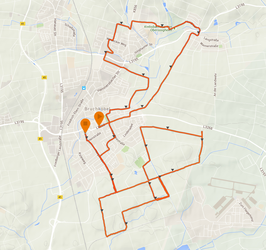 | „Brechkübel“ haben wir nach exakt einem km in Richtung Oberissigheim über plattes Land verlassen, die Pace stimmt mit 4:59 min/km auf eine Sekunde perfekt: Ich werde versuchen, möglichst einen glatten Fünferschnitt zu laufen, mindestens jedoch deutlich unter 1:50 Std. zu bleiben. Nach 1,5 km passieren wir die restaurierte und wieder bewohnte ehemalige Fechenmühle, die ich aber aufgrund der zahlreich angebauten Hallen nicht ausmachen kann. Ich erinnere mich noch gut, wie ich als Panz seinerzeit so manches Beutestück aus der damaligen Ruine mit nach Hause brachte. Ich bin vorgewarnt: Die Strecke sei hügelig und „nicht ohne“. Der erste Anstieg bei km 2,5 ist für einen Westerwälder moderat, eigentlich nicht der Rede wert. Ausgangs des dritten km befinden wir uns in Oberissigheim (1.500 Einwohner), das wir nach bereits wenigen hundert Metern wieder verlassen. Anderthalb weitere km benötigt es, um über freies Feld nach Niederissigheim („Issgem“, 3.000 Einwohner) zu gelangen. Die Streckenführung empfinde ich als attraktiv, auch wenn die Belastung für viele Läufer durch die große Wärme und das fast vollständige Fehlen von Schatten auf der ersten Hälfte hoch sein dürfte. Es ist schön für mich, auf altbekannten und vertrauten Straßen und Wegen unterwegs zu sein. Die zweite kurze, aber ruppige Steigung zwingt einige schon zum Gehen, ich drücke hoch und bin bald oben. Die Verpflegungsstelle (insgesamt vier, eine davon doppelt für den Hin- und Rückweg ausgelegt, sehr eifrige Helfer) lasse ich bis auf die Schwämme aus, da ich Dank mitgeführter Trinkflasche autark bin. Die Metzgerei Eidmann erkenne ich sofort wieder und auch die Lönsstraße, in der mein Freund Rüdiger im ehemaligen elterlichen Haus lange gewohnt hat. Auch wenn ich Jahrzehnte nicht mehr hier gewesen bin, entdecke ich vieles Bekannte. Nach Unterquerung der Landstraße zwischen Roßdorf und Oberissigheim biegen wir links ab. Im Knick steht ein Anfeuerungsplakat für die TCB-Runners, denen meine Schwester Ulla angehört. Ich sehe dabei eine Frau und einen Mann sitzen, daß es sich bei dem Mann um den Felix handelt, höre ich erst später, da hat mich die Gesichtserkennung doch im Stich gelassen. Zwei Drittel der 10 km-Strecke liegen hinter uns, als uns Niederissigheim wieder ausspuckt und, kurze Zeit parallel zu Bloch- und Krebsbach, wieder zurück nach Bruchköbel führt. Zarte Erinnerungen kommen beim Vorbeilaufen am Rosenring hoch… Insgesamt dreimal unterstützen uns liebe Menschen, die ihre privaten Gartenduschen aufgestellt haben bzw. uns mit einem Gartenschlauch Abkühlung anbieten. Allerdings findet der Lauf leider fast unter Ausschluß der Öffentlichkeit statt, nur ganz wenige Menschen stehen am Rand und spenden Beifall. Aber Helfer hat’s ohne Ende, an praktisch allen Ecken stehen sie in Gelb und verhindern erfolgreich unser Verlaufen. Von km 8 bis 9,5 begleiten uns noch die 10 km-Läufer, teils über die mit Birken bepflanzte „Hochzeitsallee“ (meine Birke ist wohl mal, passend zur ersten Ehe, eingegangen und neu gepflanzt worden), dann teilen sich die Wege: Die Zehner biegen nach rechts zum Ziel ab, wir links zum Wald, den wir bei exakt km 10 erreichen. 49:32 Minuten sind vergangen, das Tempo paßt in fast beängstigender Weise. Fünf km lange Geraden im Wald liegen nun vor uns, die aber nicht wirklich ein Problem bedeuten. Erstens ist es schattig und zweitens kann man gut seinen Gedanken nachhängen, auch sind die Wege fast durchgehend fest und daher gut zu belaufen. Obwohl ich schon aufpassen muß, denn zu schnell schweife ich ab und falle in ein Wohlfühltempo zurück, das hier und heute nicht angesagt ist. Die km 10 bis 14 verlaufen als exaktes Rechteck. Auf einer kurzen Wendepunktstrecke bei gut km 15 kann ich die Mitläufer der eigenen Preisklasse prima begutachten. Interessanterweise laufen die meisten sehr konstant, nur zweimal werde ich auf der zweiten Hälfte kassiert, vier oder fünf Konkurrenten überhole ich selber. Irgendwo zwischendrin steht meine Schwester Jutta mit ihrem Mann Andreas zum Anfeuern und für einen Schnappschuß des laufenden Helden, danke! |