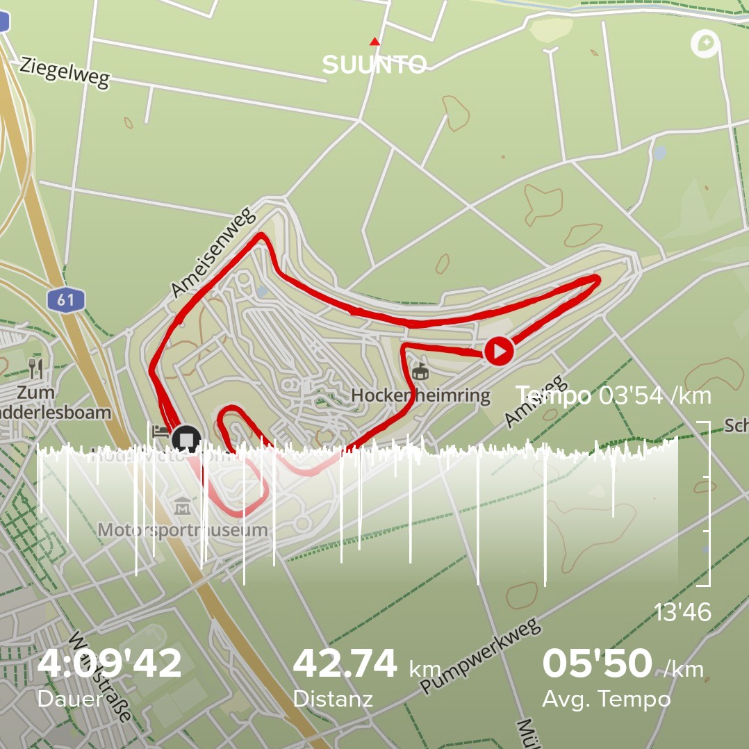 Dreimal war ich schon auf dem legendären Nürburgring unterwegs gewesen. Grand Prix-Kurs plus Nordschleife, 24,4 begeisternde km mit einer Steilwandkurve und vielen Höhenmetern, das hatte was. Betonung auf hatte, denn der Lauf wurde vor einigen Jahren bereits zum zweiten Mal eingestellt. Wenn sich einem dann die Gelegenheit bietet, mit überschaubarem Aufwand erneut einen ehemaligen Formel 1-Kurs abzuwackeln, sollte man diese wahrnehmen.