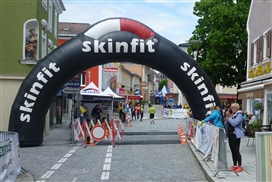 Weiter und weiter führt der Weg bergab, Micheldorf ist erreicht und bald darauf Kirchdorf in voller Breite und Ausdehnung. Ein letzter km der ersten Runde führt durch den Ort, dann bin ich auf der Hauptstraße und habe noch wenige hundert Meter der Hauptstraße vor mir. Da steht die Gattin vor dem Zielbogen und strahlt mit der Sonne um die Wette. 2:28 Stunden habe ich bis jetzt gebraucht. Damit ist klar, daß sich das mit den fünf Stunden nicht ausgehen wird, wie man hier zu sagen pflegt. Im VP-Zelt steht eine Halbmarathonia und hält mir ihr Finisherbier entgegen: „Mogst a Schluckerl?“ Kloar mog i, und dafür gibt’s a Busserl.