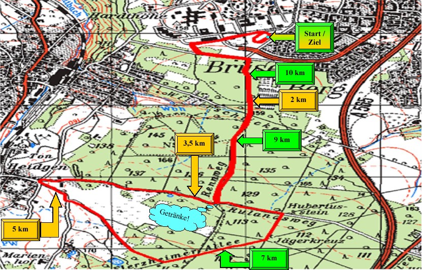 | Kurz vor der Kaserne riskiere ich einen Blick nach hinten, den ich vorher vermieden habe, denn der wird ja bekanntermaßen als Zeichen von Schwäche gewertet. Der nächste Läufer liegt weit zurück, aber ich ziehe trotzdem weiter durch, denn so weit vorne werde ich vermutlich nie wieder liegen. Nach einem weiteren km am Kreisel vor dem Südtor werde ich vom Verkehrsposten gelobt („Das sieht gut aus“! – so fühle ich mich auch) und laufe wieder in die Kaserne ein. Noch eine dreiviertel Ehrenrunde auf dem Sportplatz, ich werde namentlich begrüßt, die Zuschauer klatschen und mit stolzgeschwellter Brust werden die letzten 200 m absolviert. Nach 51:55 min ist es dann geschafft, ich bin hochzufrieden und mein weiblicher Fanblock, bestehend aus einer Person, strahlt. Mario hat natürlich gewonnen und ist 41:54 min gelaufen, das ist wohl kaum mehr als sein Longjog-Tempo. Dirk ist Zweiter in 44:45 min und damit unter einem 4er Schnitt gelaufen. Respekt, Herr Kamerad! Zufrieden trolle ich mich und werde im kommenden Jahr bestimmt wieder dabei sein. Denn, wie gesagt: Wann kann man mal mit so wenig Aufwand einen gut organisierten Wettkampf bestreiten? Und das für lau? |