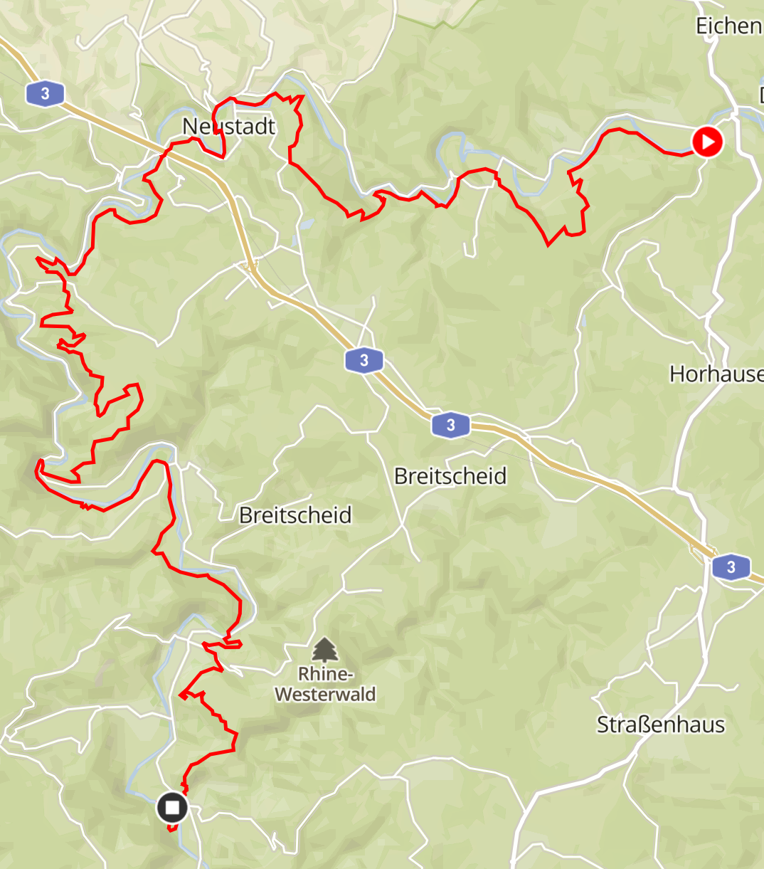 Wie beim letzten Mal starten Hanne, Tobi und ich, den Transport sowie die Verpflegung übernehmen wieder Josef und Hans-Hermann. Um 8 Uhr treffen wir uns bei Josef, die halbe Stunde nach Oberlahr ist schnell geschafft, und nachdem Hans-Hermann beim dritten Versuch die Kamera bedienen konnte und das obligatorische Startfoto im Kasten war, konnte es um 8:40 Uhr losgehen. Uns erwarten deutlich mehr Höhenmeter als auf dem ersten Abschnitt, daher geht es ganz gemach los, wir wollen ja alle in guter Verfassung ankommen. Geplant ist der Lauf nach Karte bis Bürder hinter Niederbreitbach. |