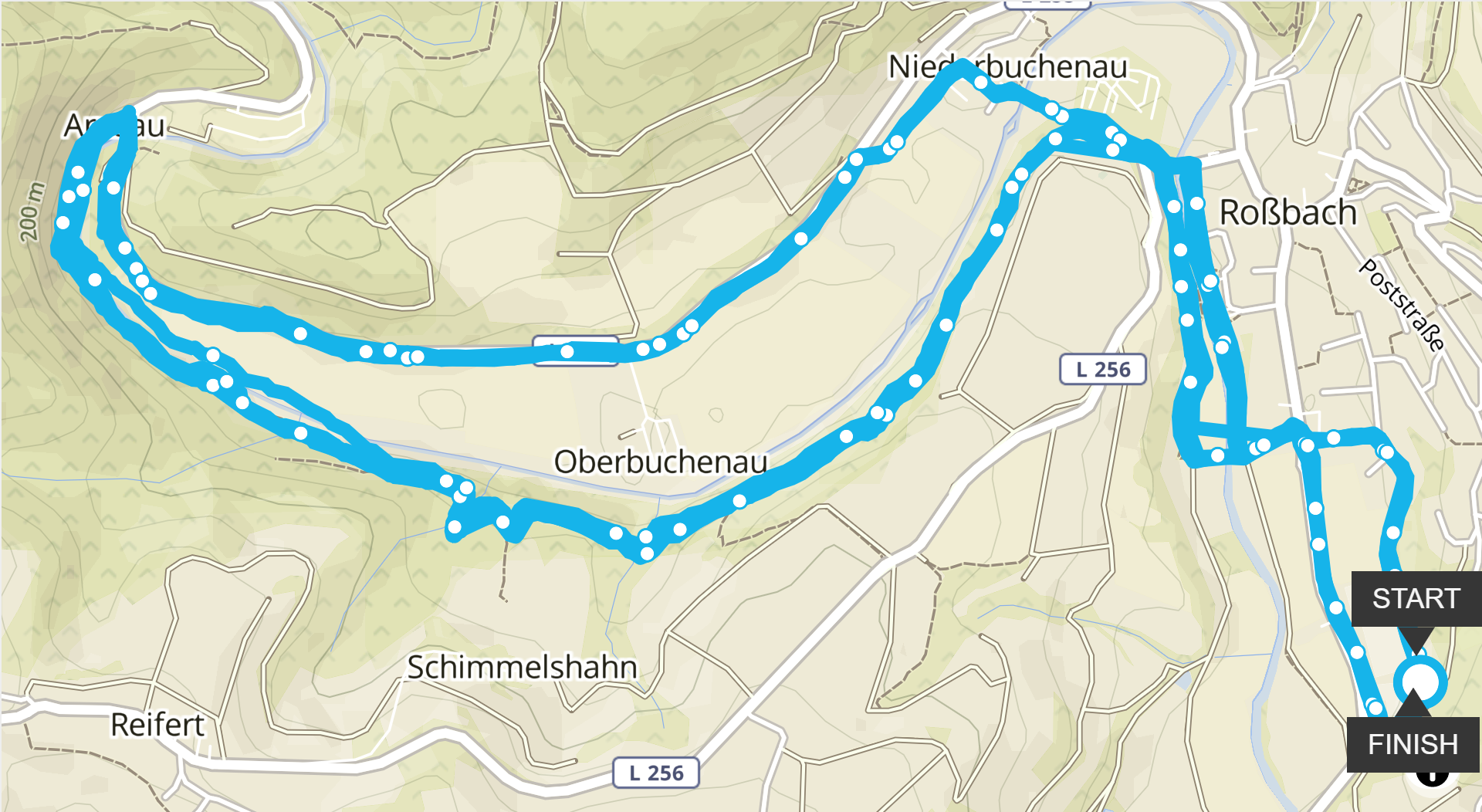 Vorsichtshalber gucke ich Freitag nochmal, als ich wieder mein Diensthandy in der Hand habe: Regen und kühl. Moooment, was läuft hier falsch. Eine kurze, technisch extrem versierte Recherche gibt Sicherheit. Mein Telefon sehnte sich offensichtlich nach Niederbayern. Denn dort gibt es auch ein Roßbach; und dort stand ein sonniges und warmes Wochenende an. So ein Diensthandy ist natürlich viel sachlicher und zeigte mir, wie das Wetter in Roßbach im Westerwald wird. Was ich nicht verstanden habe, ist, wieso mir aus unserem Lauftreff jemand dazu riet, dass ich Technik-Freak heute doch bitte darauf achten solle, das richtige Roßbach ins Navigationsgerät einzugeben, bevor ich losfahre.