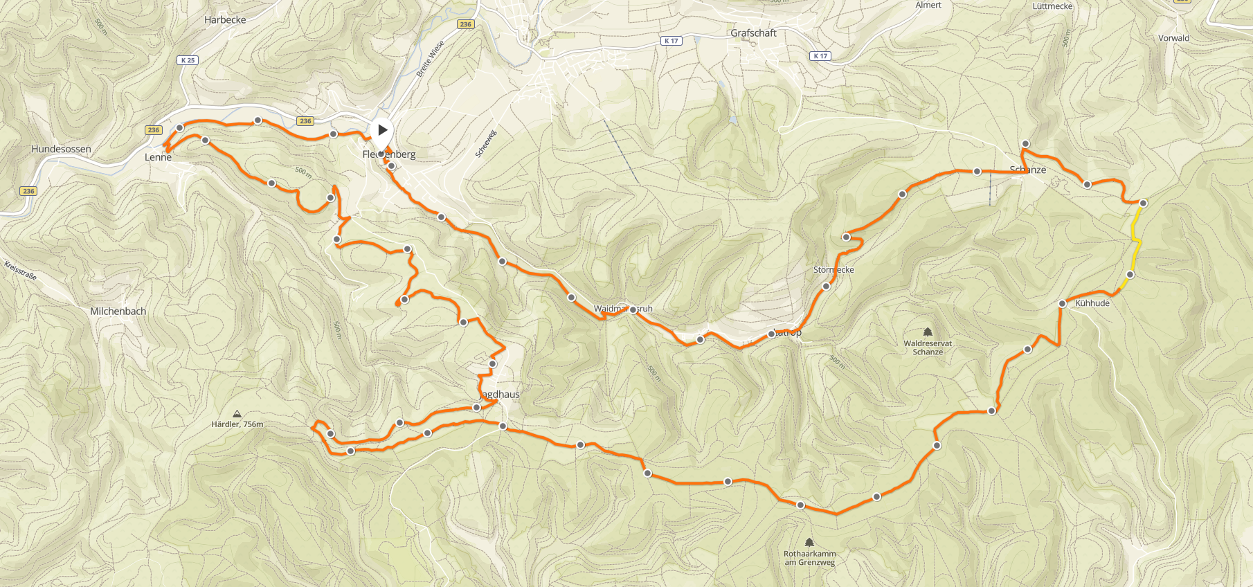 |  | Was erwarte ich heute? Einen schönen Lauf durch die Natur und kleine Ortschaften, denn „weite Ausblicke, frische Luft, Naturwege und eine besondere Atmosphäre“ versprechen mir die Organisatoren um Reimund Gawehn aus drei örtlichen Sportvereinen. Diese Laufveranstaltung sei die helle Freude für alle Freunde des Trailrunnings. Entlang des Rothaarsteigs in Nordrhein-Westfalen und Hessen wird man uns auf eine Runde mit 838 Höhenmeter schicken. Wobei der Name Rothaargebirge eigentlich „Rod-Hardt-Gebirge“ heißen müßte, was „das gerodete Wald-Gebirge“ bedeutet, denn mit der Farbe „rot“ und mit „Haaren“ hat es nichts zu tun. Ihr merkt: Nicht nur beim Anton (der hier schon zweimal seine Visitenkarte abgegeben hat), auch bei mir gibt’s was zu lernen.
