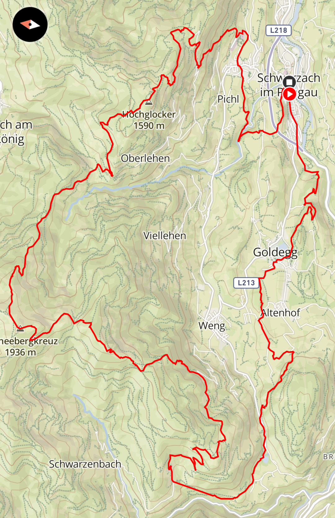 Kleiner Schwarzach-Trail über 15,6 km mit 580 Höhenmeter.