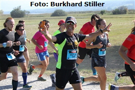 Da - habe ich richtig gesehen? Nein, ich meine nicht Burkhard, der hier wie noch weitere Male den Paparazzo gibt, ich sehe doch etwas bekanntes Oranges vor mir? Ja, ich beginne auf Eckbert aufzulaufen. Nach dem zehnten km (51:12 min., ich liege bestens in der Zeit) sind wir wieder Seite an Seite. Aha, doch etwas überzogen! Vernünftig erscheint es mir auf jeden Fall, angesichts der Witterung nicht am absoluten Limit zu kratzen. Das wiederum hält mich aber nicht davon ab, nach einem kleinen Pläuschchen unter gleichbleibender Geschwindigkeit ganz langsam die Kurve zu kratzen. 53:43 min. zur Halbzeit wären am Ende nach Adam Riese eine knappe 1:48 am Ende. Na, den Tag lieber nicht vor dem Abend loben! Vom 1:50-Pacer ist jedenfalls noch nichts zu sehen.