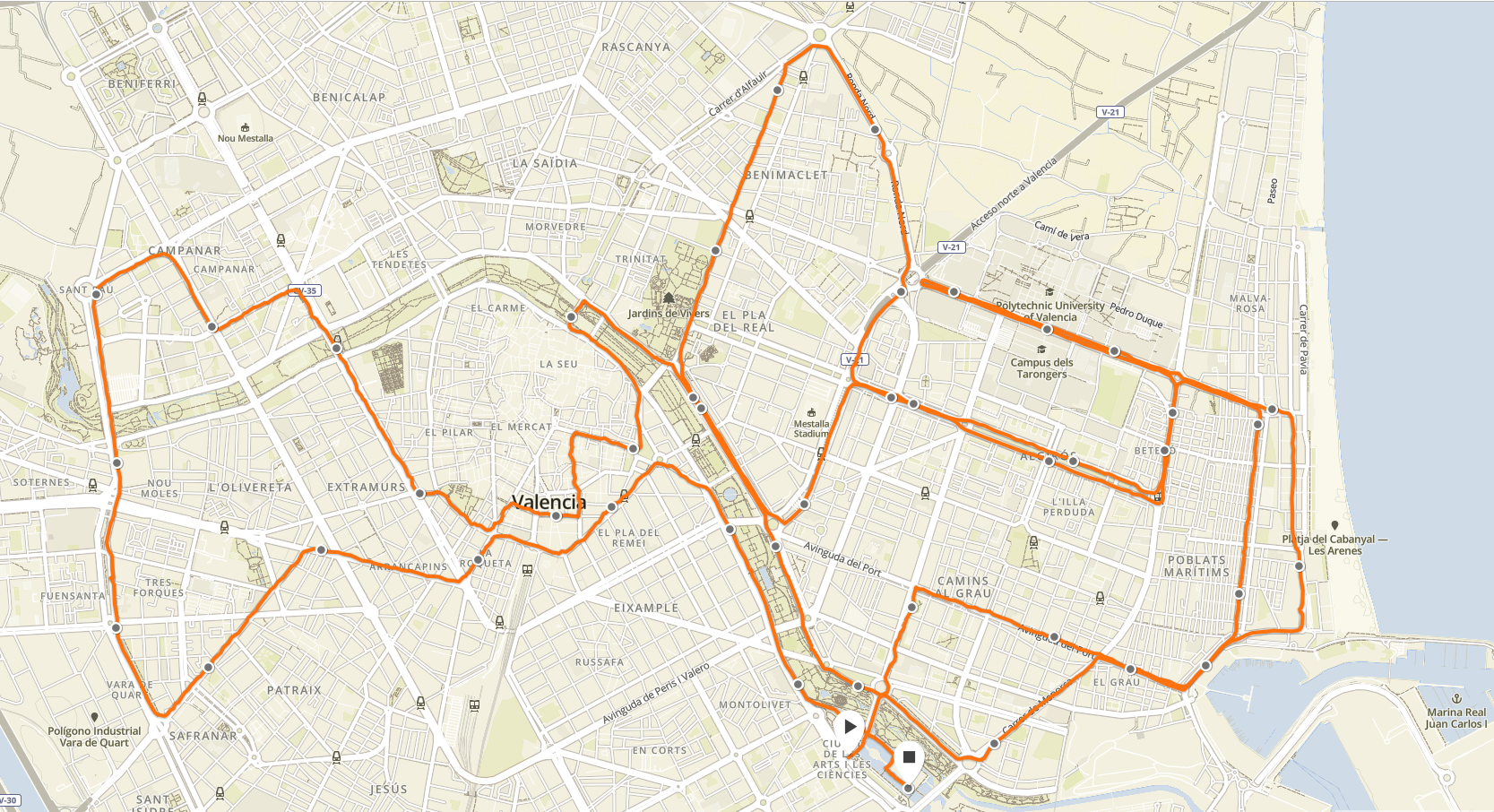|  | Ausnahmsweise bin ich mal ohne persönlichen Fanblock unterwegs und reise erst am späten Freitagabend an. Was aber nicht schlimm ist, denn vor einigen Monaten hatte ich bereits die Möglichkeit, mich hier für einige Tage umzuschauen und viel Schönes zu entdecken. Das Ergebnis meines damaligen Besuchs, ein Dokumentarfilm über diesen Marathon, kann bei Interesse gerne auf Youtube angesehen werden. Leider sind die Hotels in der zentralen Innenstadt dem Ereignis preislich angepaßt, weshalb ich weit außerhalb in Paterna residiere und eine längere Anfahrt zum Ort des Geschehens mit öffentlichen Verkehrsmitteln in Kauf nehmen muß.