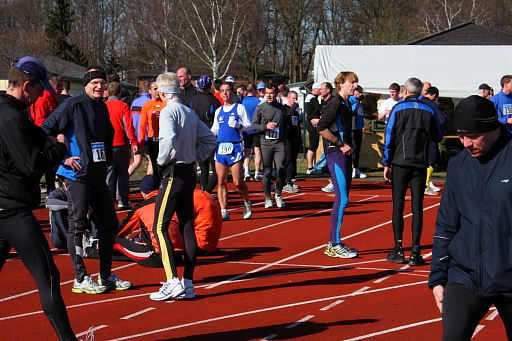 Aufgrund der guten Erfahrung aus dem letzten Jahr ist es für mich keine Frage, erneut zum Fliegerhorstlauf in die Luftwaffenkaserne nach Wahn am militärischen Teil des Flughafens Köln/Bonn zu fahren. Vorteil 1: Hier organisiert die Bundeswehr und die ist ein Garant für perfekten Ablauf. Nicht, daß es das woanders nicht gäbe, aber hier gibt es den zweifelsfrei. Zum achten Mal richtet das Luftwaffenamt hier seinen 10 km-Lauf aus. In der neuen Sporthalle, nahe zu Start und Ziel, befinden sich die Startnummernausgabe, Umkleide und Duschen, alles also prima nahe beieinander. Vorteil 2: „Zivilunken“ (Nicht-Militärs und auch Nicht-Bundeswehrangehörige) können ebenfalls teilnehmen. Ob die Entscheidung, vier Tage vor dem Marathon in Kandel noch einen 10er zu laufen, intelligent ist, wird sich schnell und allerspätestens am Sonntag herausstellen.  Vorteil 3: Der Lauf wird um 13.30 Uhr gestartet, da kann ich mich gut zwischen der Arbeit mal ausklinken und habe an diesem Tag wenigstens etwas Vernünftiges getan. ;-) Vorteil 4: Für ein überschaubares Startgeld von 4,50 € erhält man in der OHG (Offizierheimgesellschaft) hinterher sogar Kaffee und Kuchen.   Vorteil 5: Es ist zwar nach wie vor Winter, aber Köln ist immer eine warme Ecke (nicht nur zum Christopher Street Day). Der Himmel ist stahlblau und wenn der eiskalte Nordostwind nicht wäre, könnte man die lauen 11° tatsächlich genießen. Auf jeden Fall reicht es mir, Mut zu beweisen und der ungeteilten Aufmerksamkeit sicher zu sein: Ich laufe in „Kurz“! Vorteil 6: Am Start gibt es etwas zu sehen, das ich aber nur mitbekomme, weil ich von einem Laufkameraden darauf aufmerksam gemacht werde: Susanne Hahn, die Olympia- und WM-Teilnehmerin im Marathonlauf, ist anwesend. Zwar nicht als Läuferin, sondern als Fan ihres Mannes Frank, eines Fregattenkapitäns. Dick eingemümmelt erkennt sie keiner und so wird sie bei der Ansage leider auch nicht erwähnt. Das zufriedene Grinsen, das ich erkenne, klärt sich nach einem Besuch ihrer Homepage auf: Madame sind schwanger! |